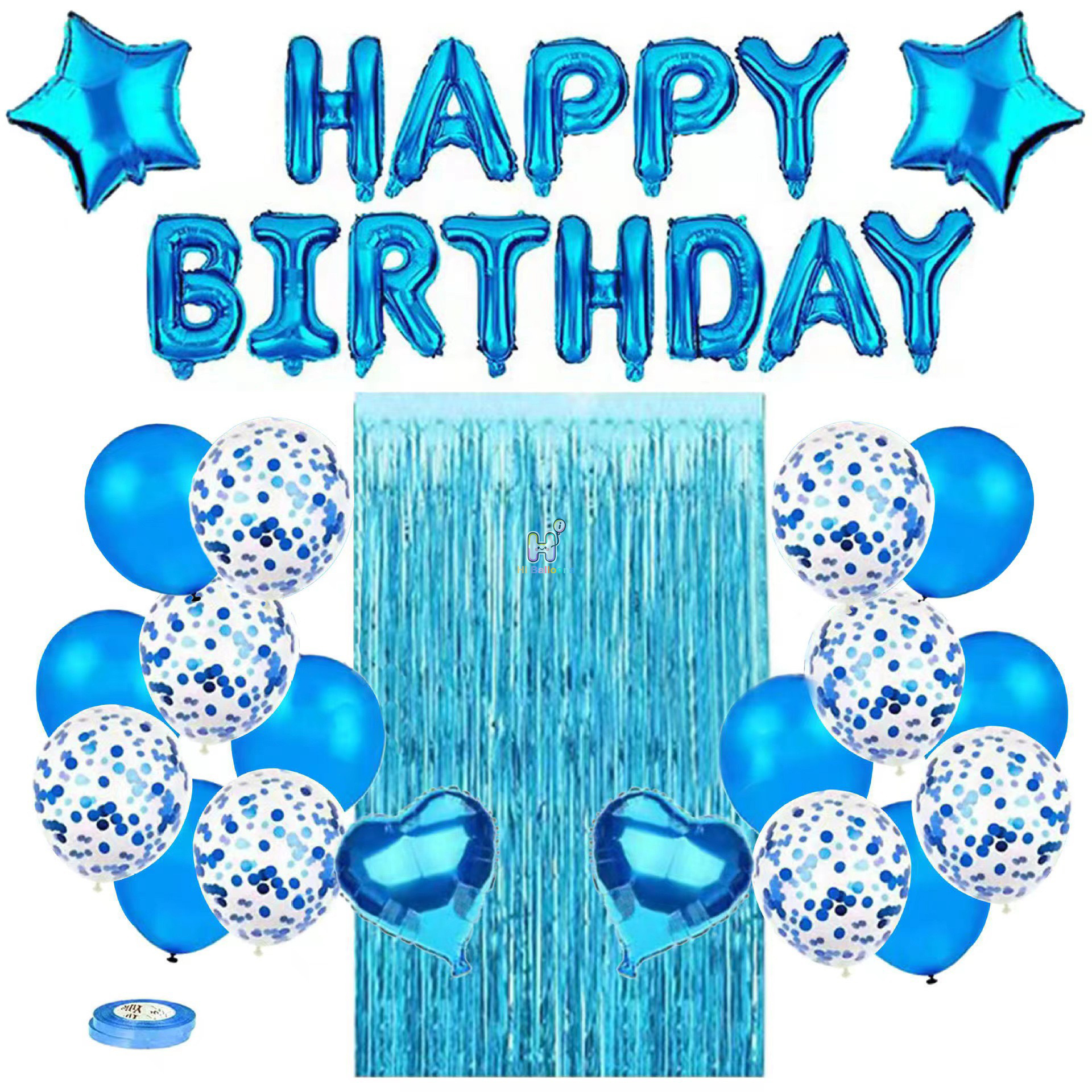 | Includes | Latex Balloons: 10pcs*12″Metallic Blue,10pcs*12″Blue Confetti, Foil Balloons: 2pcs*Blue Star,2pcs*Blue Heart,1set*Blue Happy Birthday, Foil Fringe Curtains: 2pcs*Blue, Ribbon:1roll*Blue |